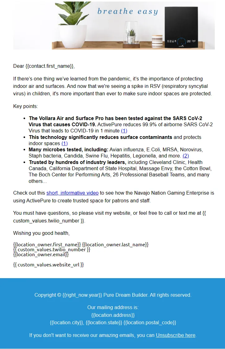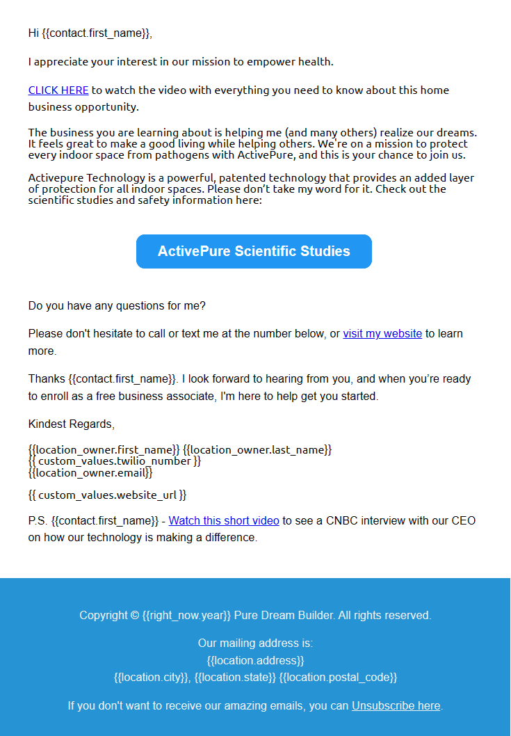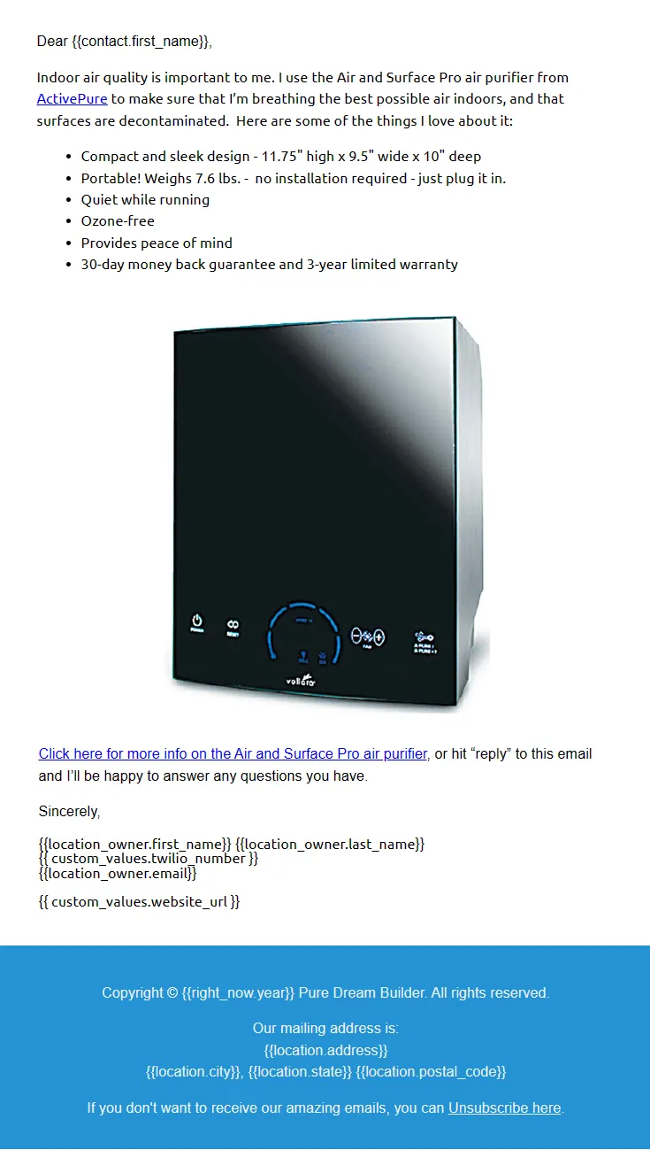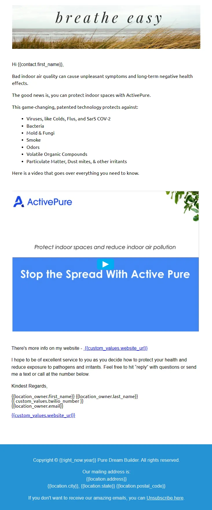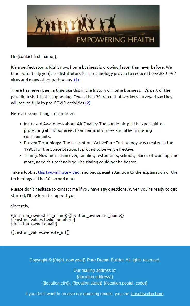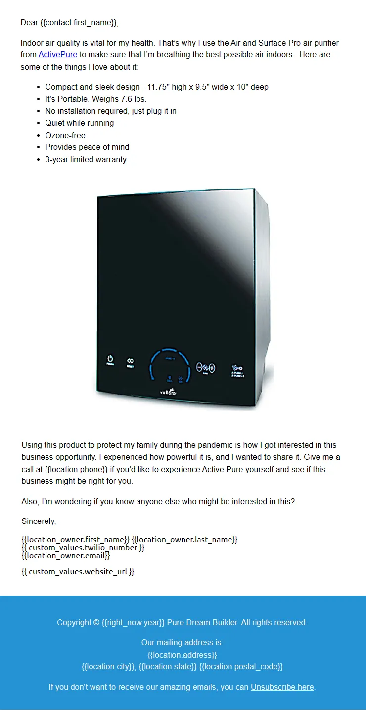 Hi ! I just emailed you the presentation that you requested about the air purification business. I bet you’re a bit like me and you like to watch short videos on your phone. Here’s one to check out: https://vimeo.com/599241422