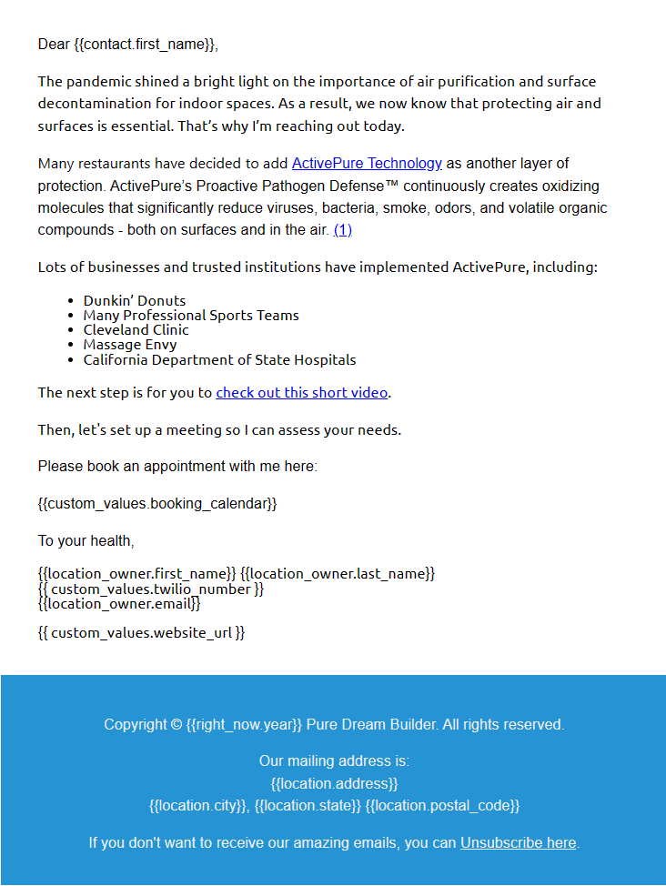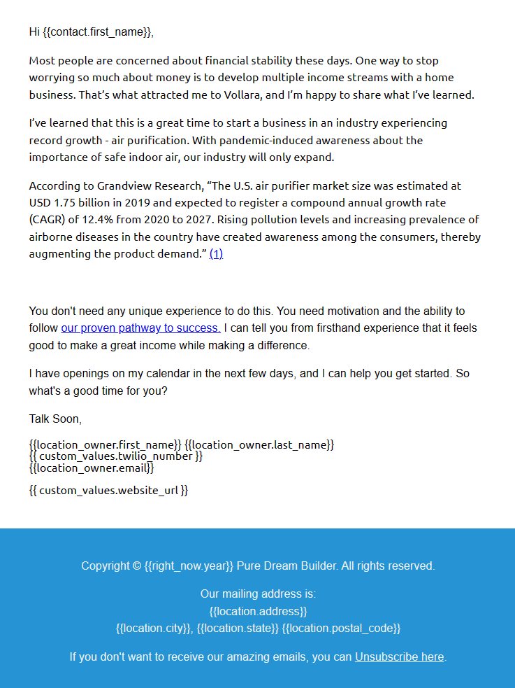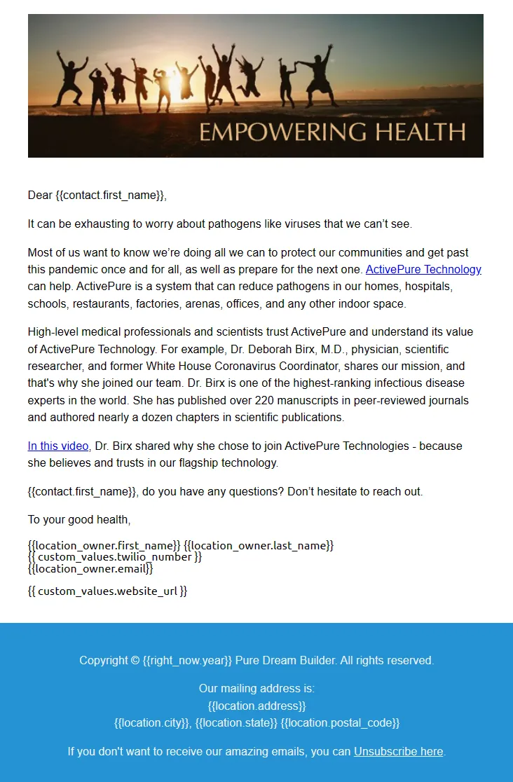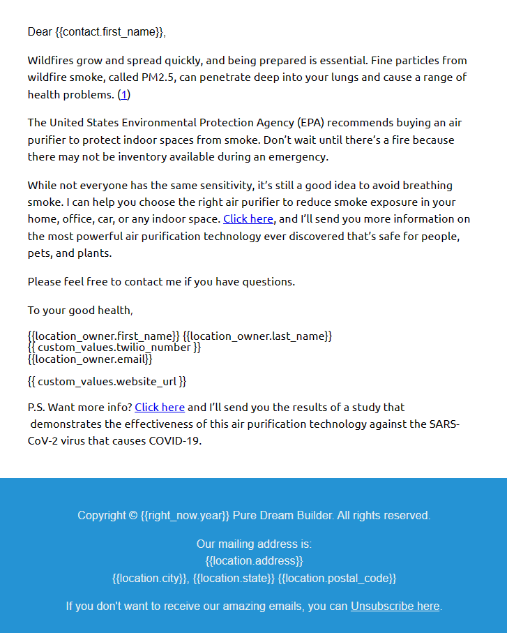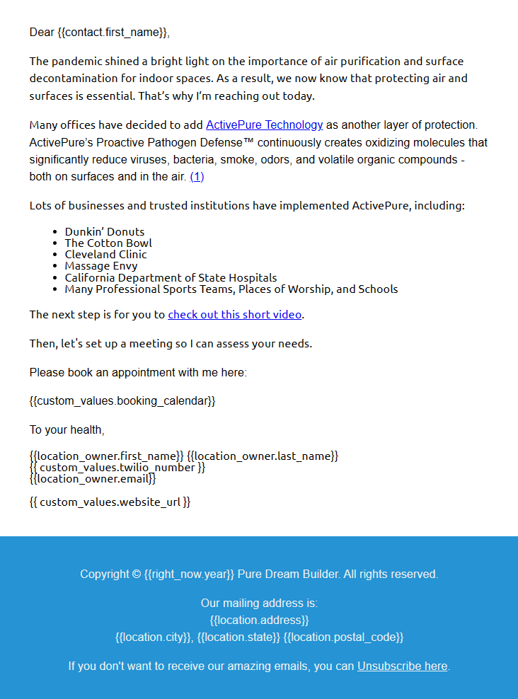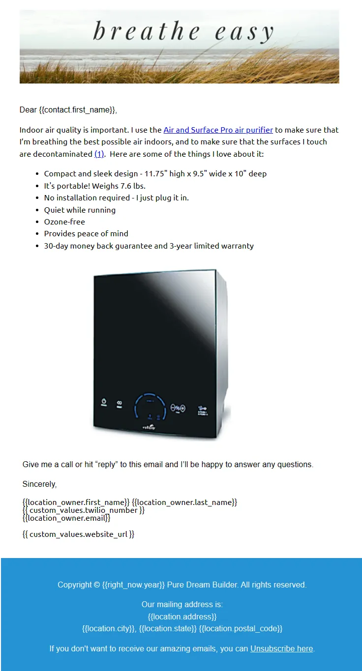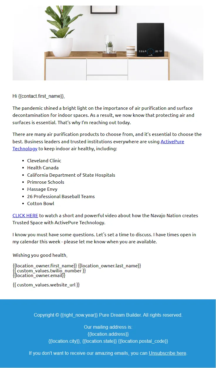 Hi ! I just emailed you the presentation that you requested about the air purification business. I bet you’re a bit like me and you like to watch short videos on your phone. Here’s one to check out: https://vimeo.com/599241422