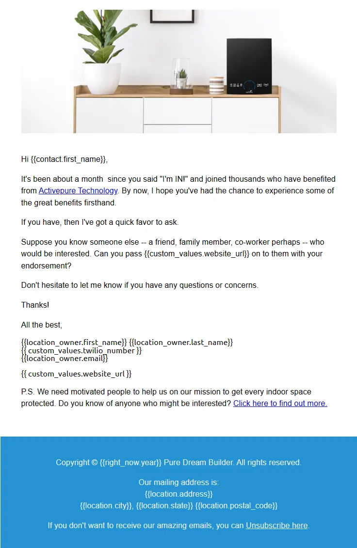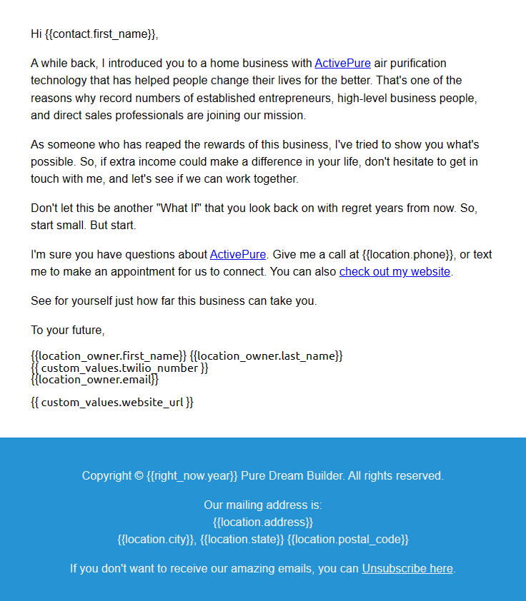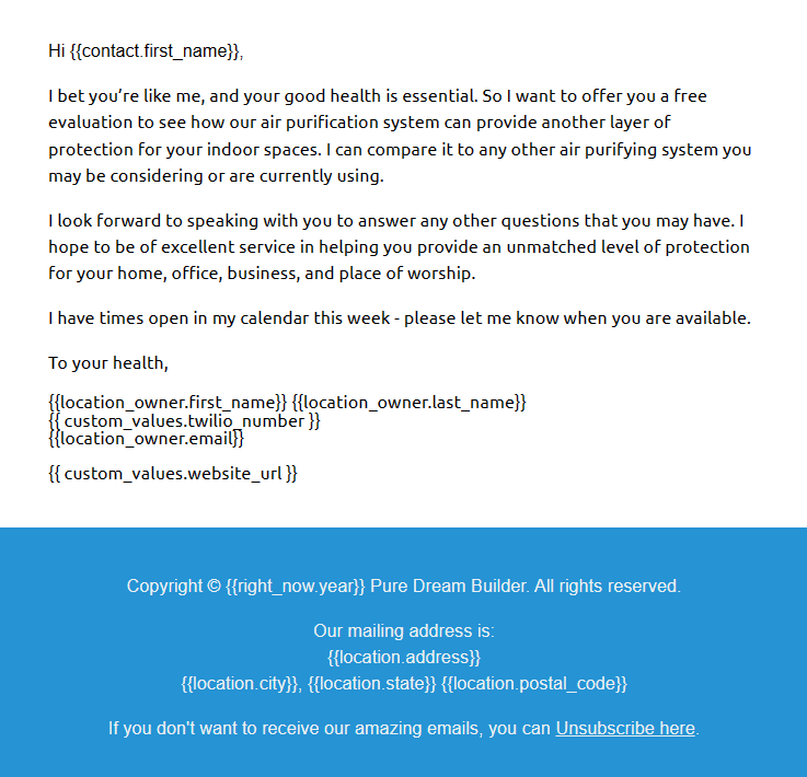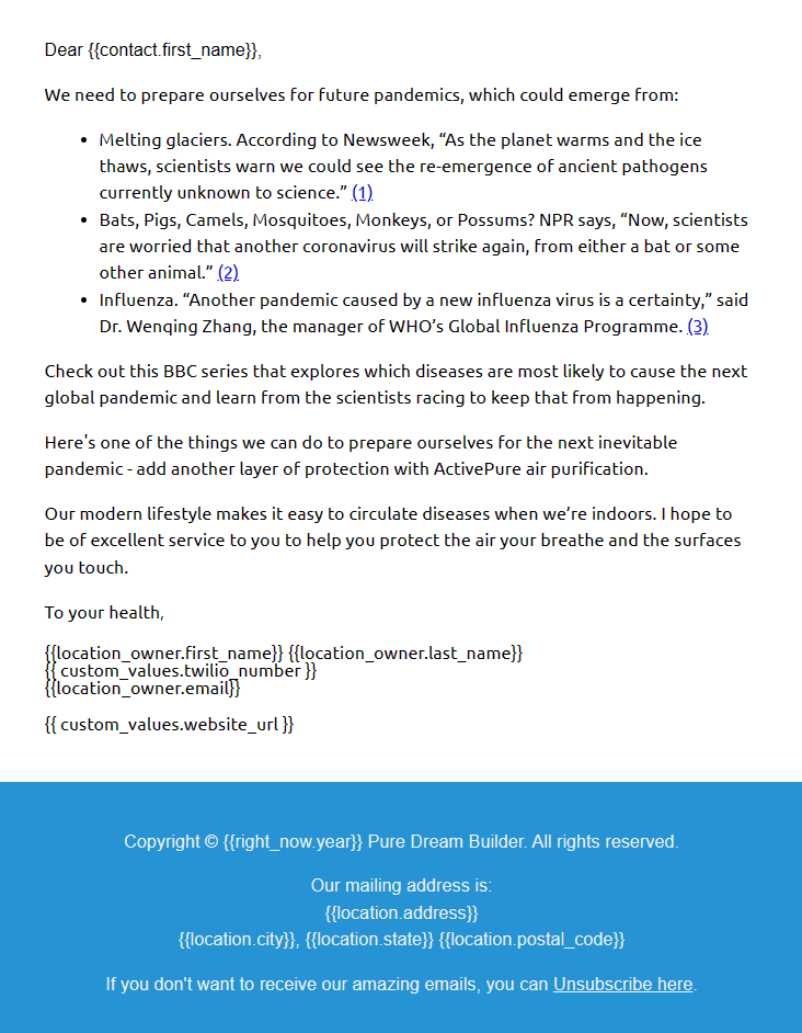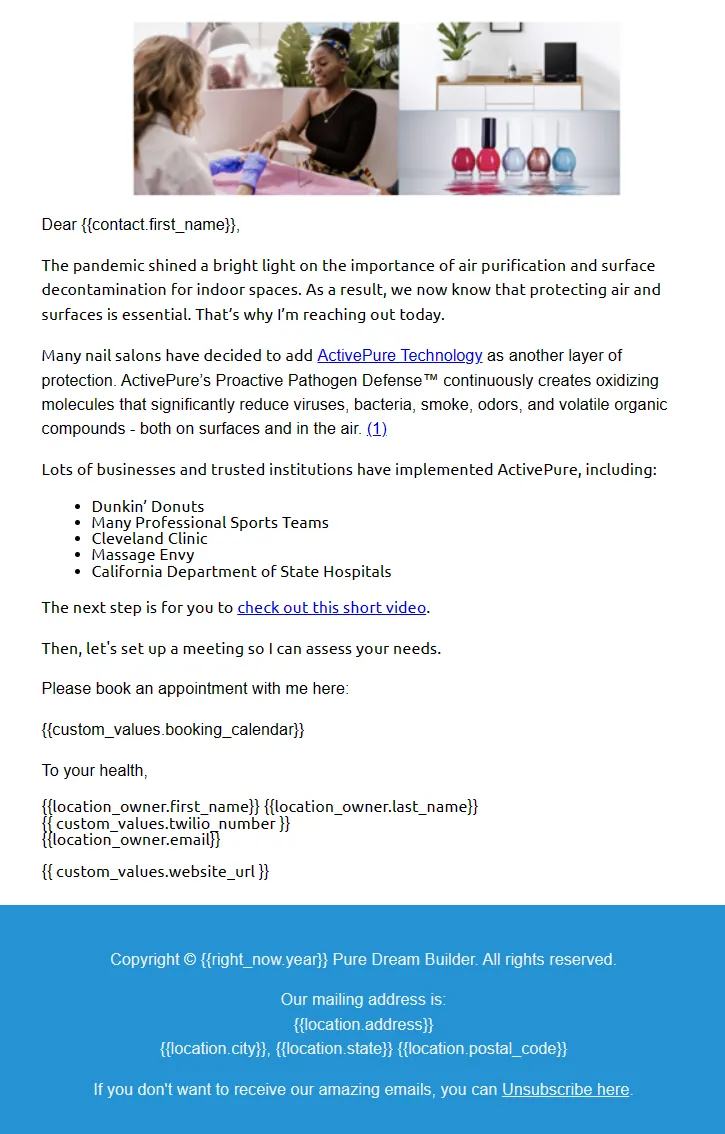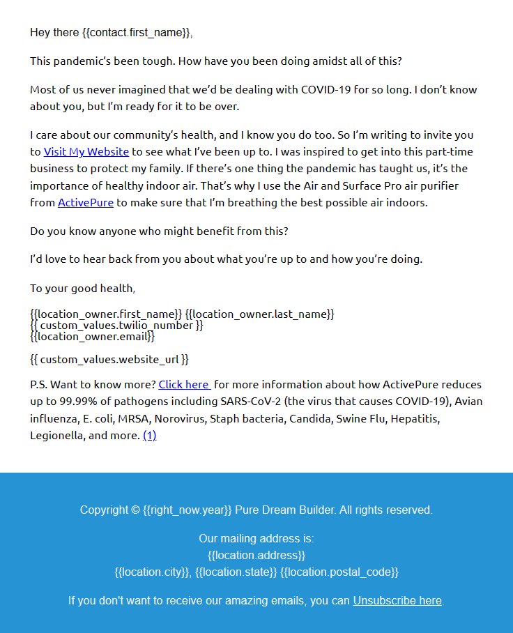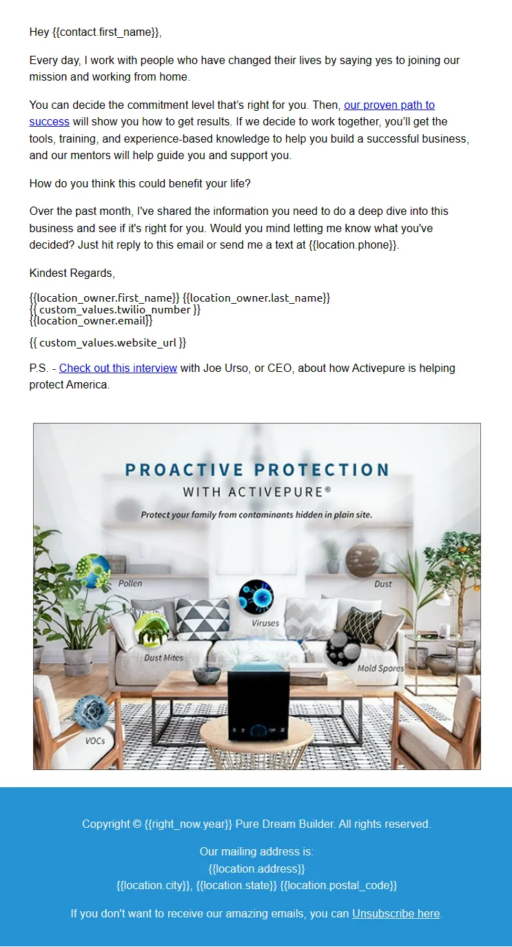 Hi ! I just emailed you the presentation that you requested about the air purification business. I bet you’re a bit like me and you like to watch short videos on your phone. Here’s one to check out: https://vimeo.com/599241422